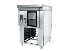 Desain struktural yang kokoh dilengkapi dengan roda kastor untuk mobilitas yang mudah, memungkinkan oven ini ditempatkan dan dipindahkan sesuai kebutuhan ruang dapur komersial Anda. Material berkualitas tinggi yang digunakan memastikan durabilitas dan kemudahan perawatan dalam jangka panjang. Dengan kombinasi fitur-fitur canggih seperti rak baki berputar dan kontrol digital yang lengkap, oven ini menjadi investasi ideal bagi bisnis kuliner yang mengutamakan kualitas, konsistensi, dan efisiensi dalam operasional sehari-hari.