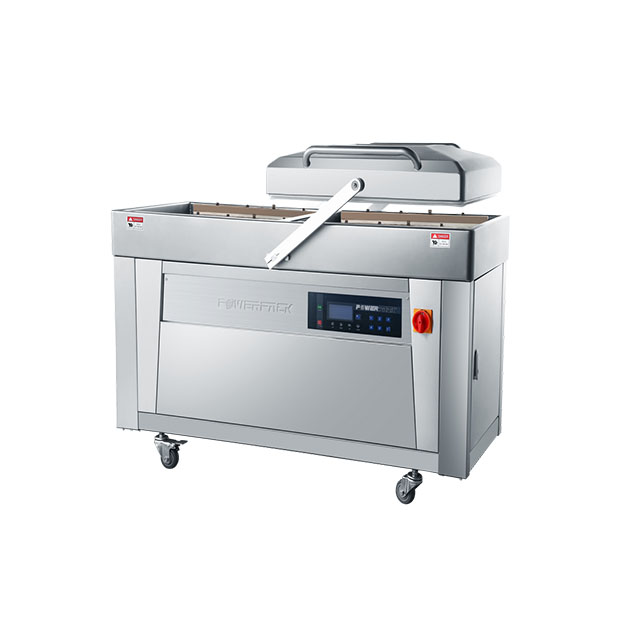 Mesin ini dilengkapi dengan dua ruang vakum yang memungkinkan proses pengemasan dilakukan secara berkelanjutan. Saat satu ruang digunakan untuk proses vakum dan penyegelan, ruang lainnya sudah dapat disiapkan untuk batch berikutnya. Hal ini membantu mengurangi waktu henti dan secara langsung meningkatkan efisiensi kerja.