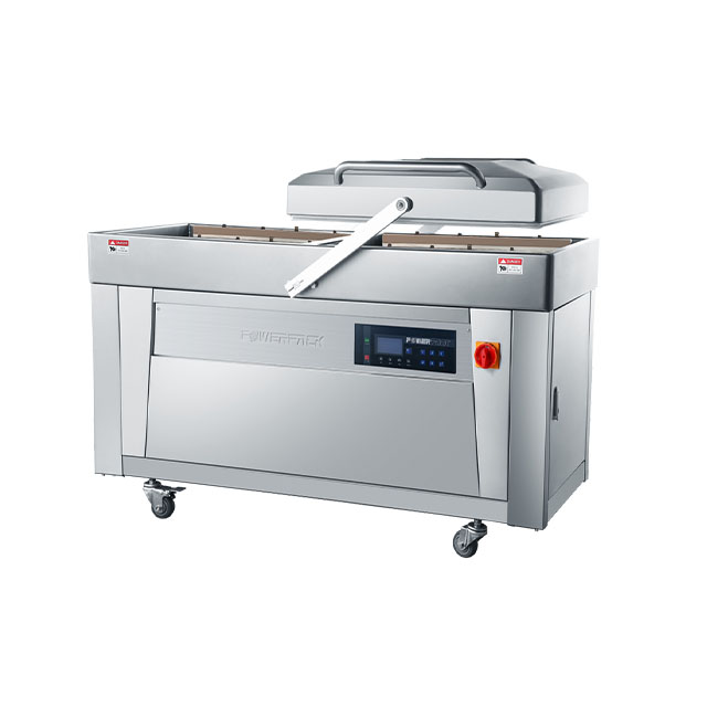 Mesin ini dilengkapi dengan dua ruang vakum yang memungkinkan proses pengemasan dilakukan secara berkelanjutan. Saat satu ruang digunakan untuk proses vakum dan penyegelan, ruang lainnya sudah dapat disiapkan untuk batch berikutnya. Hal ini membantu mengurangi waktu henti dan secara langsung meningkatkan efisiensi kerja.