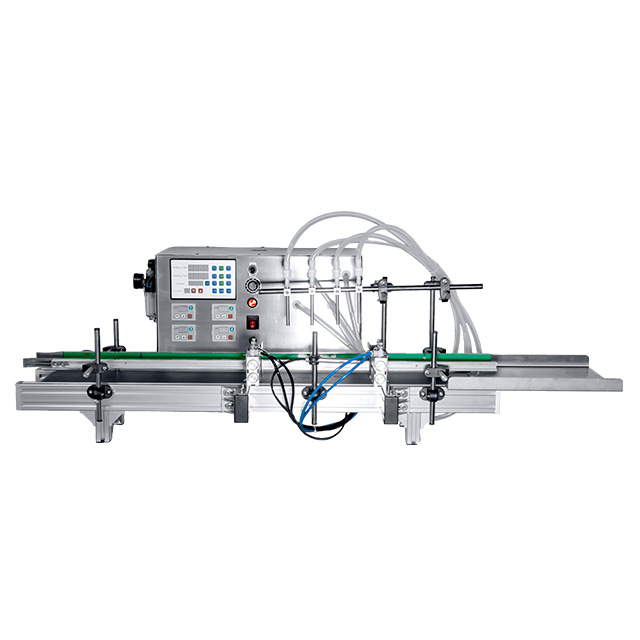 Mesin Filling Liquid Four Head Electric Digital Control Liquid Filling GFK-5000 merupakan salah satu jenis mesin yang mampu mengisi cairan kedalam kemasan secara otomatis. Dilengkapi dengan kontrol digital yang canggih, conveyor, dan sensor, perangkat ini dapat mengukur dan mengontrol jumlah cairan yang diisi ke dalam setiap wadah dengan tingkat akurasi yang tinggi. Hal ini membantu menghindari pemborosan bahan dan memastikan bahwa setiap kemasan memiliki jumlah cairan yang sesuai. Material yang digunakan sudah memenuhi standar kebersihan dan keamanan untuk penggunaan di industri makanan, farmasi, atau industri lainnya. Cocok untuk digunakan dalam skala produksi massal di berbagai industri, membantu meningkatkan efisiensi produksi dan mengurangi waktu yang diperlukan untuk proses pengisian.