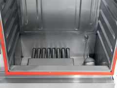 Rak dan dudukan tray dibuat dengan one-time stamping, sehingga higienis dan gampang dibersihkan