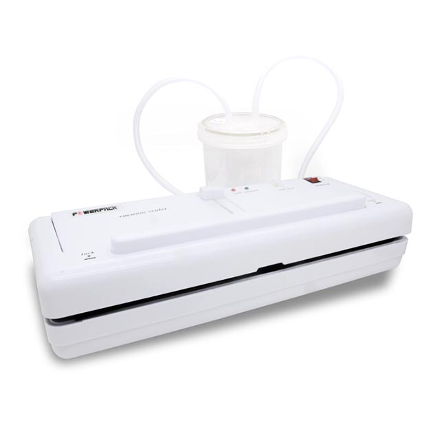Mesin Household Vacuum Sealer adalah mesin/alat yang membantu proses menyegel kemasan dengan menggunakan metode menyedot keluar udara pada kemasan produk, saat kemasan sudah bebas udara, mesin ini akan menyegel kemasan plastik sehingga udara tidak lagi masuk ke dalam kemasan. Dengan menghampakan udara yang ada di dalam kemasan plastik maka kualitas produk tetap terjaga, aman dan terhindar dari bakteri sehingga umur simpan produk dapat bertahan lama. Ketika makanan dikemas dalam ruang hampa dan disimpan di lemari es, makanan itu tetap segar dan memiliki nilai gizi. Mesin ini cocok digunakan di rumah tangga, pengusaha bakso, dan UMKM