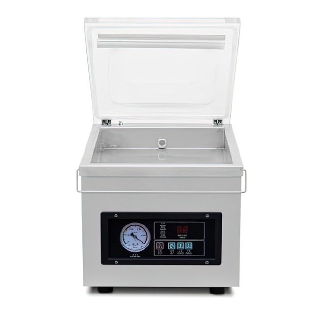 Mesin Single Chamber Vacuum Sealer merupakan mesin vakum dan segel otomatis yang digunakan untuk menyegel berbagai kemasan plastik dengan kapasitas dan berat yang lebih besar. Mesin ini dapat menyegel dan memvakum berbagai macam produk, baik produk basah maupun kering. Mesin ini digunakan untuk mengeluarkan udara dari kantong atau wadah penyimpanan makanan, menciptakan lingkungan hampa udara di dalamnya. Dengan menghilangkan udara, mesin vacuum membantu menghambat pertumbuhan mikroorganisme dan oksidasi, sehingga makanan bisa bertahan lebih lama tanpa kerusakan atau kehilangan kualitasnya.