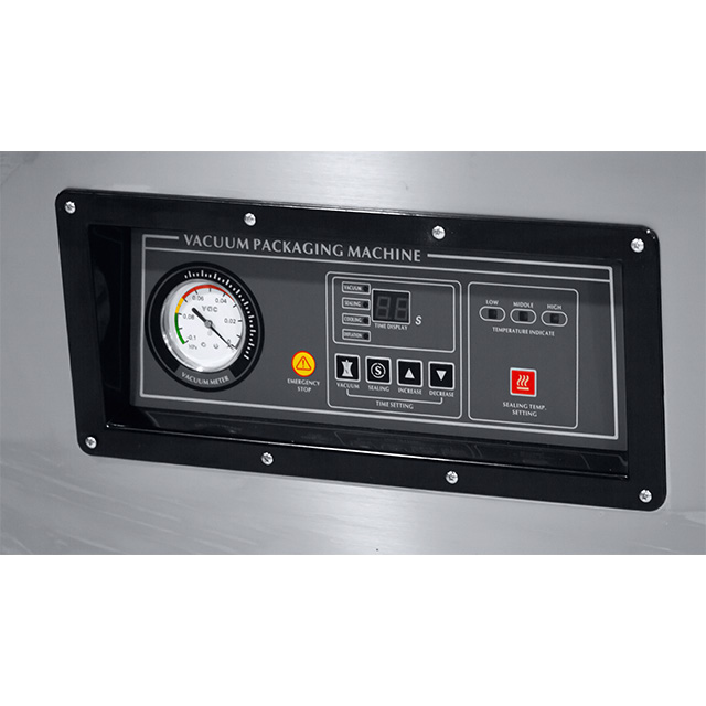 Mesin Single Chamber Vacuum Sealer juga dilengkapi dengan grounding protection yang aman dan proteksi Emergency Stop Button untuk mengatasi kecelakaan mendadak. Jika terjadi kerusakaan saat proses pengemasan sedang berjalan, seperti muncul asap, muncul suara yang tidak seperti biasanya, atau muncul kerusakan-kerusakan lainnya, pengguna dapat segera menekan tombol Emergency Stop dapat ditekan untuk menghentikan prosedur pengemasan yang berjalan.